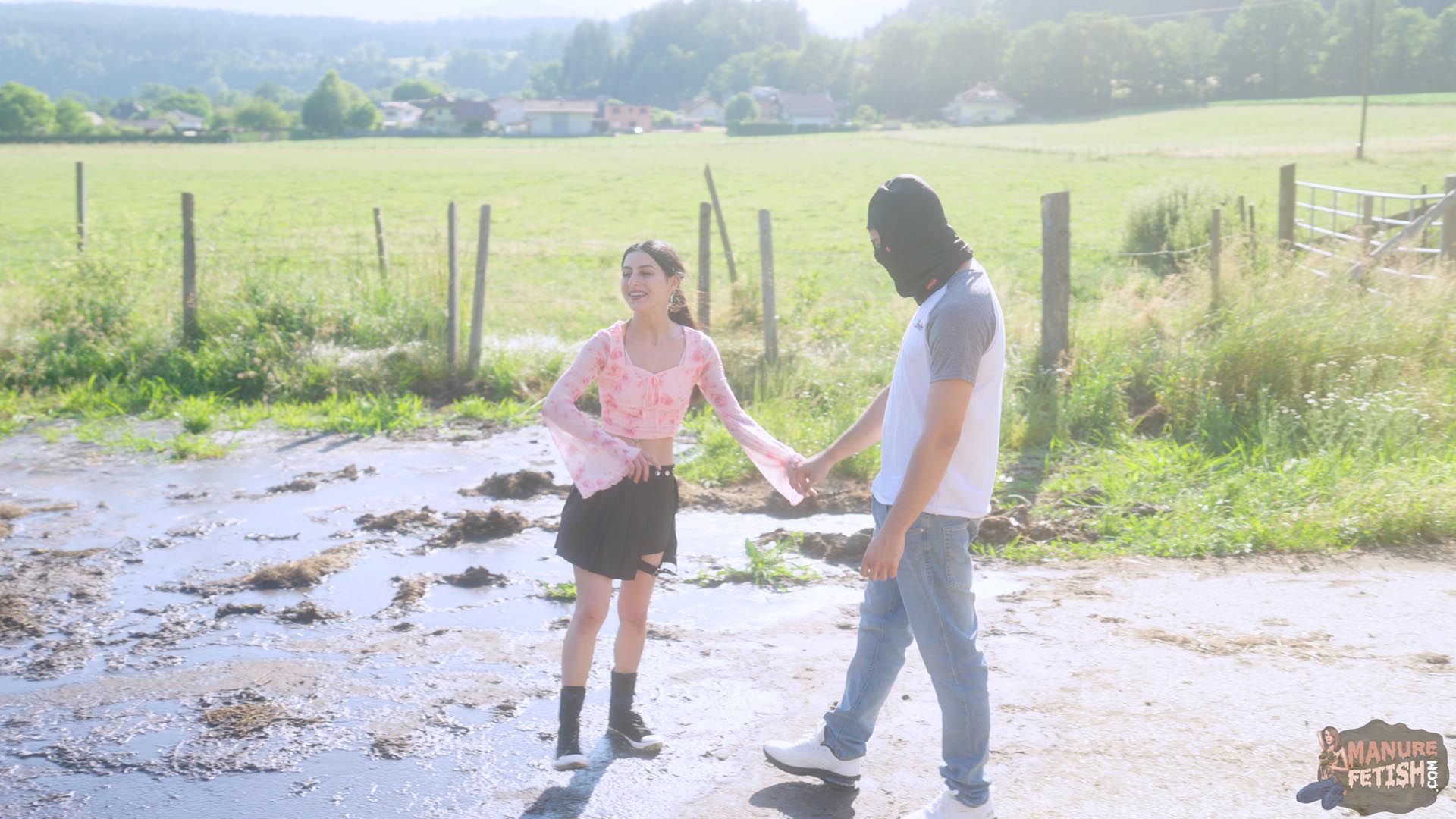 It’s a nice evening on the farm, Kaitlyn and her Boyfriend are going on a special date together. Kaitlyn Katsaros found another nice spot on the farm which they can try out together. At the edge of the dunghill Kaitlyn explains to her Boyfriend that this is a bit different then the other place but they will both enjoy it too. Her Boyfriend pushes her into the Dunghill, Kaitlyn is completely covered in cowshit at first upset but turned on by the smell of it very quickly. She begins to give him a nice blowjob, before he begins to fuck her. They both really enjoy their time together on the dunghill, fucking all around and in it in all the positions you can think of.